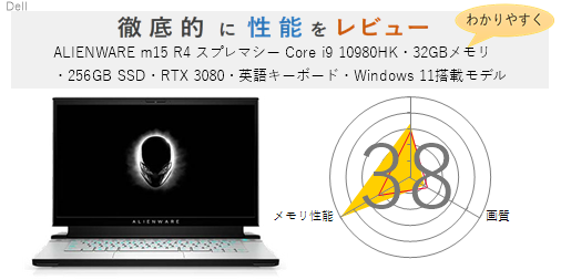 「ALIENWARE m15 R4 プレミアム Core i7 10870H・16GBメモリ・256GB SSD・RTX 3070・英語キーボード・Windows 11搭載モデル」を機能、スペック・性能、使いやすさの観点から徹底的に評価・レビューしました。またメリットとデメリットも かんたんにまとめています。(全体的にちょっと厳し目に点数をつけているかな?)ぜひ選ぶ際の参考にしてみてください。