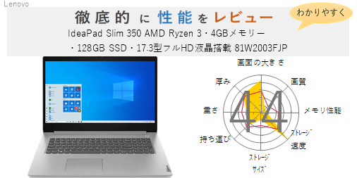 持ち運びできるノートPCを求める場合は、これより軽いノートPCを推奨します。持ち運びを想定していないユーザー向きです。
