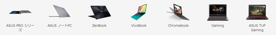 | VivoBook | 低価格・軽量を重視。エントリー向け。 | |