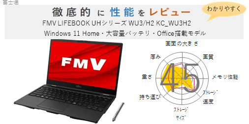 富士通【評価46点】FMV LIFEBOOK UHシリーズ WU3/H2 KC_WU3H2 Windows 11 Home・大容量バッテリ・Office搭載モデル を徹底的にレビューしてみた