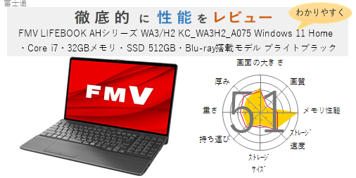 富士通【評価55点】FMV LIFEBOOK AHシリーズ WA3/H2 KC_WA3H2_A077 Windows 11 Home・Core i7・64GBメモリ・SSD 1TB・Blu-ray搭載モデル ブライトブラック を徹底的にレビューしてみた