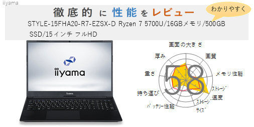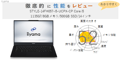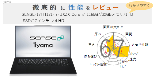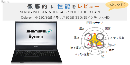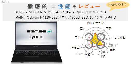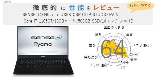 iiyama【評価60点】SENSE-14FH057-i7-UXEX-CSP StarterPack CLIP STUDIO PAINT Core i7 1165G7/16GBメモリ/500GB SSD/14インチ フルHD を徹底的にレビューしてみた