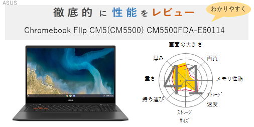「Chromebook Flip CM3(CM3200) CM3200FVA-HW0014」を機能、スペック・性能、使いやすさの観点から徹底的に評価・レビューしました。またメリットとデメリットも かんたんにまとめています。(全体的にちょっと厳し目に点数をつけているかな?)ぜひ選ぶ際の参考にしてみてください。