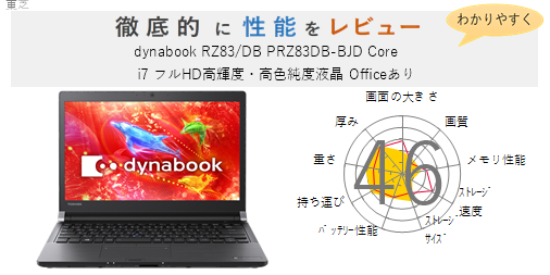 「dynabook RZ83/DB PRZ83DB-BJD Core i7 フルHD高輝度・高色純度液晶 Officeあり」の総合評価は46です。