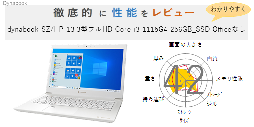 「dynabook SZ/HP 13.3型フルHD Core i5 1135G7 256GB_SSD Officeあり」を機能、スペック・性能、使いやすさの観点から徹底的に評価・レビューしました。またメリットとデメリットも かんたんにまとめています。(全体的にちょっと厳し目に点数をつけているかな?)ぜひ選ぶ際の参考にしてみてください。