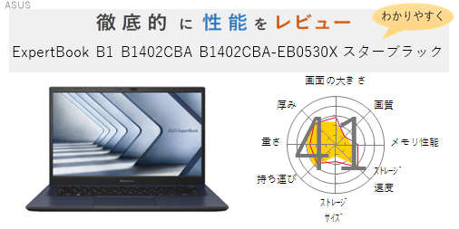 「ExpertBook B1 B1402CBA B1402CBA-EB0530X スターブラック」を機能、スペック・性能、使いやすさの観点から徹底的に評価・レビューしました。またメリットとデメリットも かんたんにまとめています。(全体的にちょっと厳し目に点数をつけているかな?)ぜひ選ぶ際の参考にしてみてください。