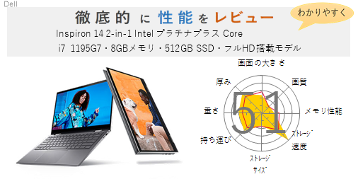 【評価51点】Inspiron 14 2-in-1 Intel プラチナプラス Core i7 1195G7・8GBメモリ・512GB SSD・フルHD搭載・Office Personal 2019付モデル を徹底的にレビューしてみた