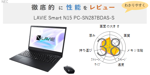 「LAVIE Smart N15 PC-SN287 Core i7 8GBメモリ SSD512GB Office付 2021年11月発売モデル」を機能、スペック・性能、使いやすさの観点から徹底的に評価・レビューしました。またメリットとデメリットも かんたんにまとめています。(全体的にちょっと厳し目に点数をつけているかな?)ぜひ選ぶ際の参考にしてみてください。