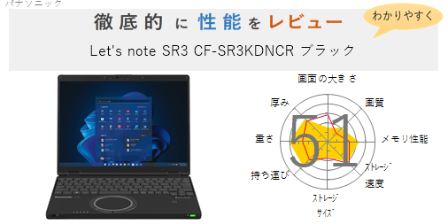 「Let’s note SR3 CF-SR3KFPCR SIMフリー ブラック」の総合評価は51です。