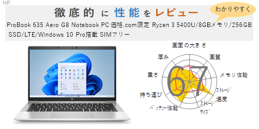 「ProBook 635 Aero G8 Notebook PC 価格.com限定 Ryzen 5 5600U/16GBメモリ/512GB SSD/LTE/Windows 10 Pro搭載 SIMフリー」を機能、スペック・性能、使いやすさの観点から徹底的に評価・レビューしました。またメリットとデメリットも かんたんにまとめています。(全体的にちょっと厳し目に点数をつけているかな?)ぜひ選ぶ際の参考にしてみてください。