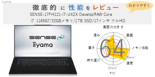 「SENSE-17FX152-i7-NAPX Core i7 11800H/32GBメモリ/500GB SSD/RTX 3050/17インチ フルHD」を機能、スペック・性能、使いやすさの観点から徹底的に評価・レビューしました。またメリットとデメリットも かんたんにまとめています。(全体的にちょっと厳し目に点数をつけているかな?)ぜひ選ぶ際の参考にしてみてください。
