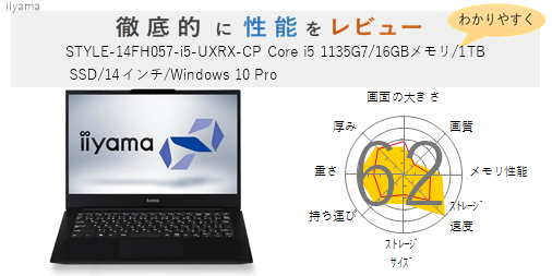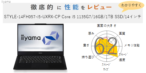 【評価63点】STYLE-14FH057-i5-UXRX-CP Core i5 1135G7/16GBメモリ/1TB SSD/14インチ/Windows 10 Pro を徹底的にレビューしてみた