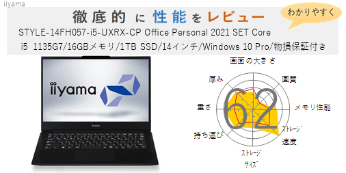 「STYLE-14FH057-i5-UXRX-CP Core i5 1135G7/16GB/1TB SSD/14インチ」の総合評価は63です。