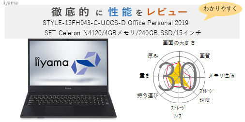「STYLE-15FH043-C-UCCS-D Celeron N4120/4GBメモリ/240GB SSD/15インチ」を機能、スペック・性能、使いやすさの観点から徹底的に評価・レビューしました。またメリットとデメリットも かんたんにまとめています。(全体的にちょっと厳し目に点数をつけているかな?)ぜひ選ぶ際の参考にしてみてください。