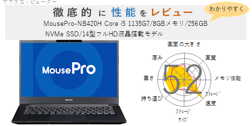 「MousePro-NB420H Core i5 1135G7/8GBメモリ/256GB NVMe SSD/14型フルHD液晶搭載モデル」を機能、スペック・性能、使いやすさの観点から徹底的に評価・レビューしました。またメリットとデメリットも...