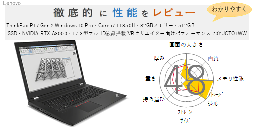 Lenovo【評価48点】ThinkPad P17 Gen 2 Windows 10 Pro・Core i7 11850H・32GBメモリー・512GB SSD・NVIDIA RTX A3000・17.3型フルHD液晶搭載 VRクリエイター向けパフォーマンス 20YUCTO1WW を徹底的にレビューしてみた 「ThinkPad P17 Gen 2 Windows 10 Pro・Core i7 11850H・32GBメモリー・512GB SSD・NVIDIA RTX A3000・17.3型フルHD液晶搭載 VRクリエイター向けパフォーマンス 20... 2021.08.12 2023.05.27Lenovo