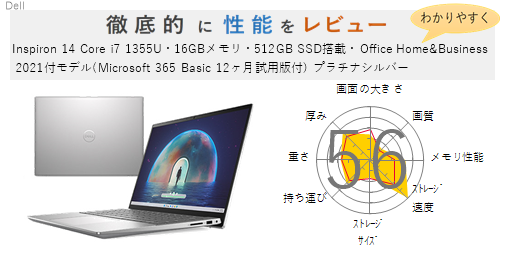 Dell【評価56点】Inspiron 14 Core i7 1355U・16GBメモリ・512GB SSD搭載・Office Home&Business 2021付モデル(Microsoft 365 Basic 12ヶ月試用版付) プラチナシルバー を徹底的にレビューしてみた 「Inspiron 14 Core i7 1355U・16GBメモリ・512GB SSD搭載・Office Home&Business 2021付モデル(Microsoft 365 Basic 12ヶ月試用版付) プラチナシルバー」... 2023.11.02Dell