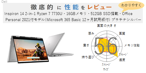 Dell【評価57点】Inspiron 14 2-in-1 Ryzen 7 7730U・16GBメモリ・512GB SSD搭載・Office Personal 2021付モデル(Microsoft 365 Basic 12ヶ月試用版付) プラチナシルバー を徹底的にレビューしてみた 「Inspiron 14 2-in-1 Ryzen 7 7730U・16GBメモリ・512GB SSD搭載・Office Personal 2021付モデル(Microsoft 365 Basic 12ヶ月試用版付) プラチナシルバー」を機... 2023.11.02Dell