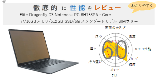 HP【評価61点】Elite Dragonfly G3 Notebook PC 6H161PA・Core i5/16GBメモリ/512GB SSD/5G搭載 SIMフリー スレートブルー を徹底的にレビューしてみた