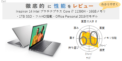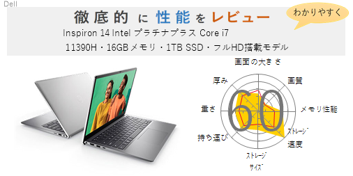 Dell【評価52点】Inspiron 14 Intel プラチナプラス Core i7 11390H・8GBメモリ・512GB SSD・フルHD搭載モデル を徹底的にレビューしてみた
