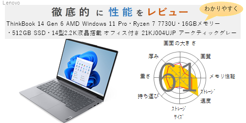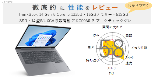 Lenovo【評価57点】ThinkBook 14 Gen 6 Windows 11 Pro・Core i5 1335U・16GBメモリー・256GB SSD・14型WUXGA液晶搭載 オフィス付き 21KG009XJP アークティックグレー を徹底的にレビューしてみた