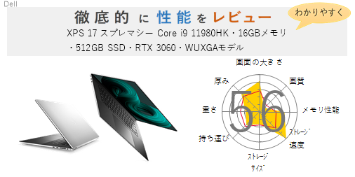 Dell【評価56点】XPS 17 スプレマシー Core i9 11980HK・16GBメモリ・512GB SSD・RTX 3060・WUXGA・Windows 11搭載モデル を徹底的にレビューしてみた