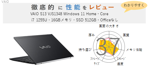 「VAIO S13 VJS1348 Windows 11 Home・Core i5 1235U・8GBメモリ・SSD 256GB・Officeなし」を機能、スペック・性能、使いやすさの観点から徹底的に評価・レビューしました。またメリットとデメリットも かんたんにまとめています。(全体的にちょっと厳し目に点数をつけているかな?)ぜひ選ぶ際の参考にしてみてください。
