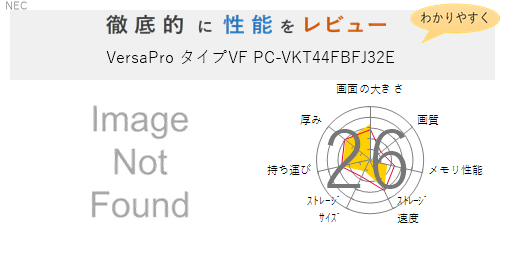 VersaPro タイプVF PC-VKL44FBFJ31Eの 画面の大きさ 画質 グラフィック描画 CPU性能 ストレージ 容量 メモリ性能 持ち運び 重さ 厚み 設置性 操作性 レーダーチャート